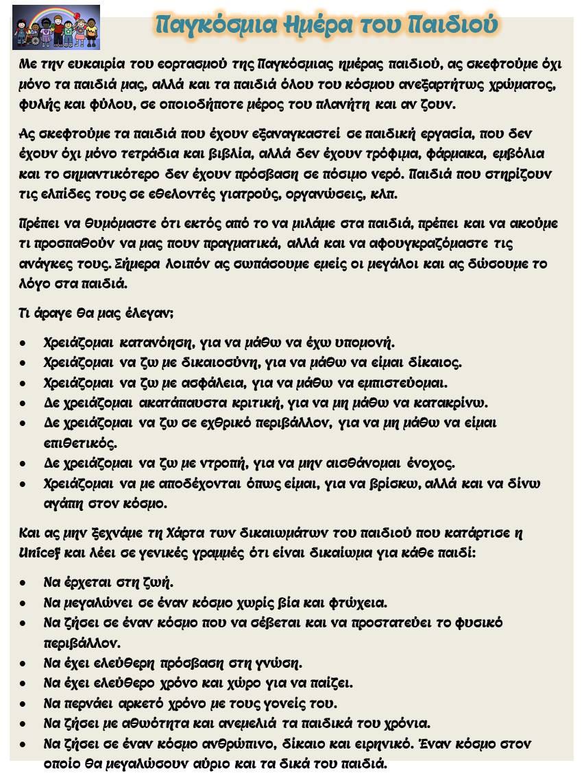 1η Ιουνίου Παγκόσμια Ημέρα του Παιδιού